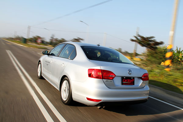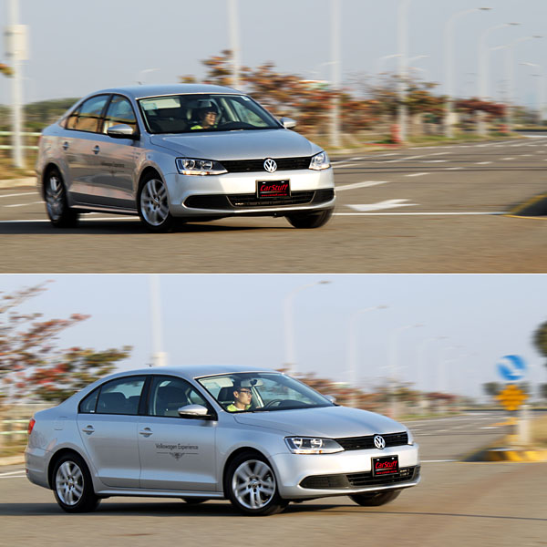 此次試駕的主角,也就是引進台灣的全新第六代Jetta,皆為搭載1.4TSI的汽油增壓車型,單增壓的設定,配上七前速DSG雙離合器自手排變速系統,擺明了就是為了環保節能而來,雖然透過增壓的加持,多少提升了加速的威力,但配上了超過1.4噸的車重,在一般D檔位前進中,平順應該是唯一的形容詞,要瞬間有著動力支援,大腳油門外或是手動降檔方可滿意,如果等不及的,直接切換至S檔位,刻意維持的較低檔位與拉高的轉速,是多點動力的選擇,但相對的,你也要承受那頻頻拉高轉速的引擎聲吼,雖然不過於粗糙與嘶吼,但久了下來,也多少有點壓力。