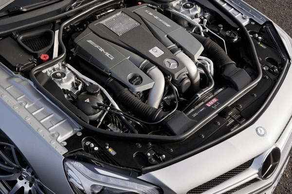 在有了更為輕盈的體態下,搭載之動力系統,動力輸出則更勝以往,其搭載全新5.5L雙渦輪增壓V8引擎,可輸出537hp/5500rpm最大馬力與800Nm/2000-4500rpm最大扭力,若選配AMG Performance package,最大馬力將可提升至564hp/5500rpm,最大扭力更增加至900Nm/2250-3750rpm,搭配7速AMG SPEEDSHIFT MCT變速系統,讓它0-100km/h起步加速只需4.3或4.2秒,0-200km/h起步加速則為12.9或12.6秒,電子速限為250km/h,若解速限後,極速將可輕易地突破300km/h。然而更重要的是,在如此強大的動力輸出下,SL 63 AMG藉由Stop & Go系統等節能科技,在NEDC測試標準下,還可以有平均9.9L/100km〈約為10.1km/L〉的油耗表現,較前代車型降低達30%,相當於每行駛100km可以減省4.2L的燃油,相當優異。