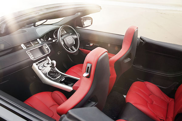 基本上Range Rover Evoque Convertible Concept在座艙陳設上,都與Evoque Coupe相同,僅在尾廂部分增加了軟頂敞篷結構,以及伸縮式防滾籠,配備部分,包括具備領先同級車之八吋螢幕之資訊整合系統,整合了恆溫空調、音響、環景攝影、停車輔助等功能,而Land Rover獨有的Terrain Response地形反應系統同樣為標準配備。