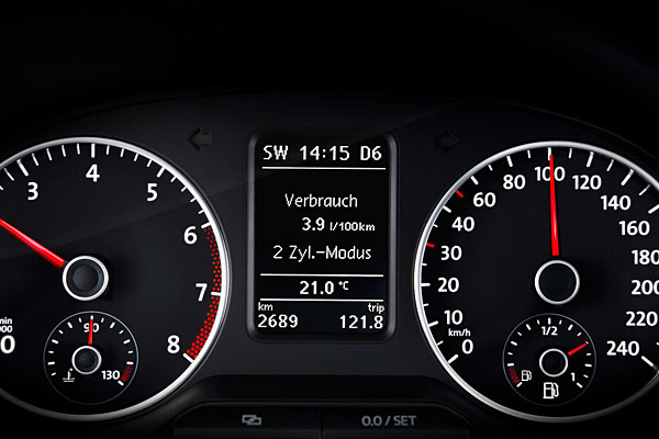 此代號為EA211的四缸增壓引擎,可具備如此亮眼的性能數據與環保表現,就是因為導入了全新設計的汽缸休止技術,在引擎輸出低、中負載狀態下,可將第二缸與第三缸自動休止。根據測試,在每百公里的行駛距離中,可節省約0.4升的油量消耗;如果當以定速50km/h時速前進,更可於每百公里的行駛距離中節省1公升油量;如果使用五檔並以70km/h時速前進,則可於每百公里的行駛中節省0.7公升的燃油。