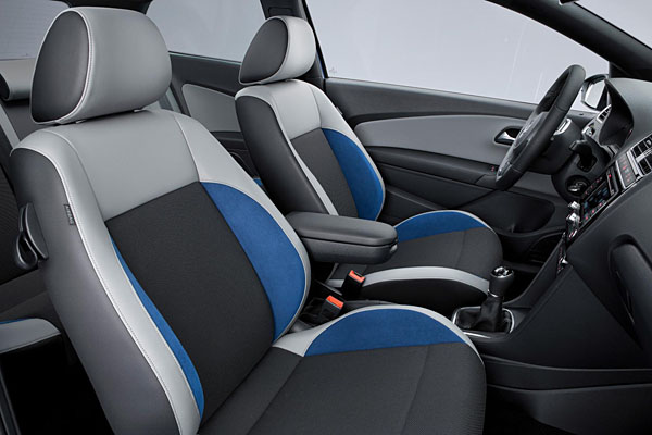 座艙內設計比照Polo GTI,不過於座椅設計中稍有不同,導入藍色主題,強調出其兼具環保節能與性能的雙重魅力。