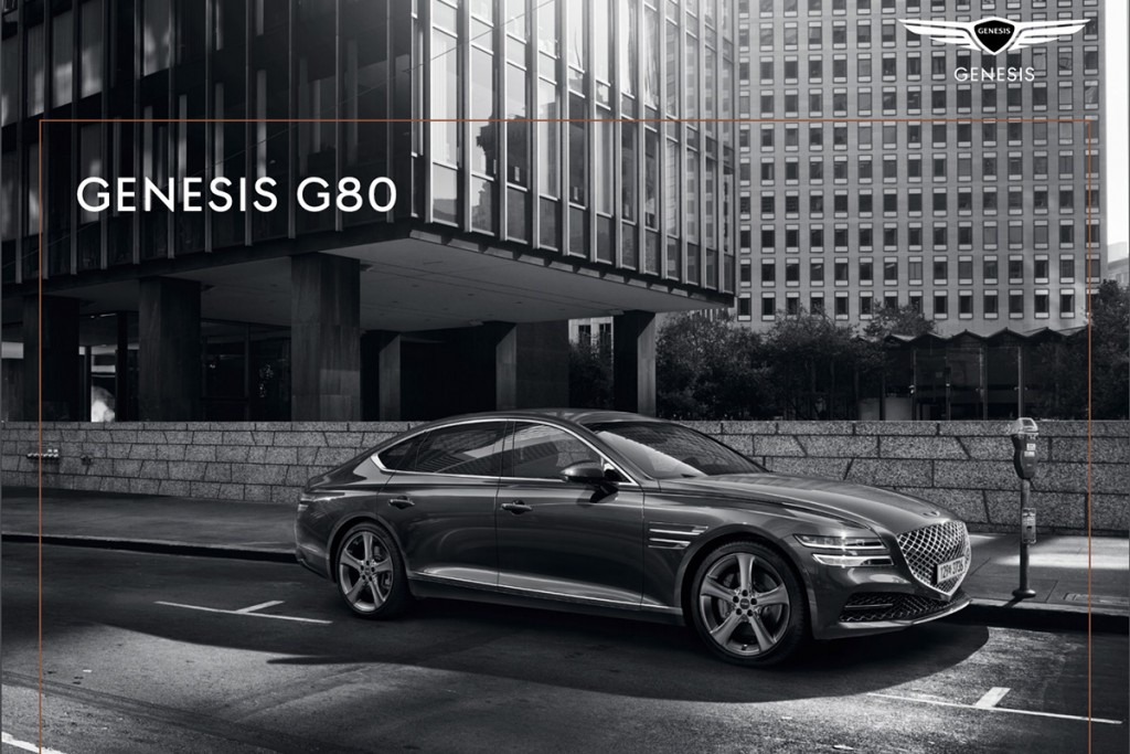 全新 G80 完全導入 GV80 的設計語彙,以「Athletic Elegance」設計語彙強化之 G-MATRIX 為底、「Genesis」廠徽作為發想,車頭碩大的 Crest 網狀水箱護罩相當亮眼,搭配雙層極細化的頭燈充滿未來感;而車側肌肉感十足的二道鈑件折痕、寬大的輪拱以及從前到後緩緩延伸的拋物線車頂,使得 G80 脫離過去較為傳統的三廂房車佈局,轉型成 Coupe Like 的調性。