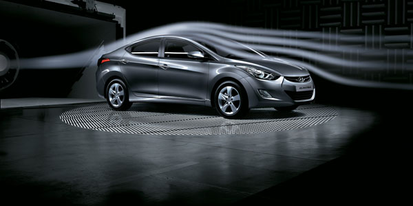 近年來,Hyundai新世代車系在隨著ix35以及Sonata換上了承襲自i-Flow概念車的「流體雕塑」設計概念,全新Elantra以「Wind Craft風動美學」扮演著以自然元素〝風〞的角色,以如風一般柔順流暢的線條,塑造出Elantra富含運動跑車風格的流線車身造型, Hyundai All New Elantra在車頭部分已經讓人感覺到相當濃厚的運動感風格;引擎蓋上的鈑件摺線不但充滿了肌力感,外擴的鈑件摺線搭配左右兩側前葉子板向外擴張的輪拱,再加上前保桿左右兩具銳利的霧燈也讓All New Elantra具有更為低趴寬扁的跑車感受。