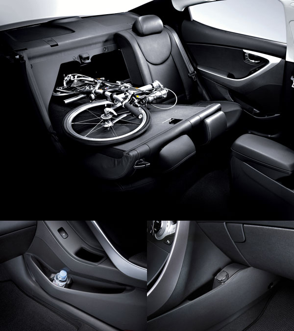 All New Elantra採用機械極小化、空間極大化設計,因此擁有同級寬敞的車室空間,由於拜2,700mm的軸距設定之賜,All New Elantra在流線的外觀車身線條下,並未因此犧牲了車室內的乘坐空間表現;尤其在極為低斜的C柱,傳統的直覺下後座空間應已所剩無幾,但因較為傾斜的後座姿設定所賜,不但提升了後座的舒適感,更增加了膝部及頭部空間機能,並未被流線的設計所壓榨後座的整體空間。