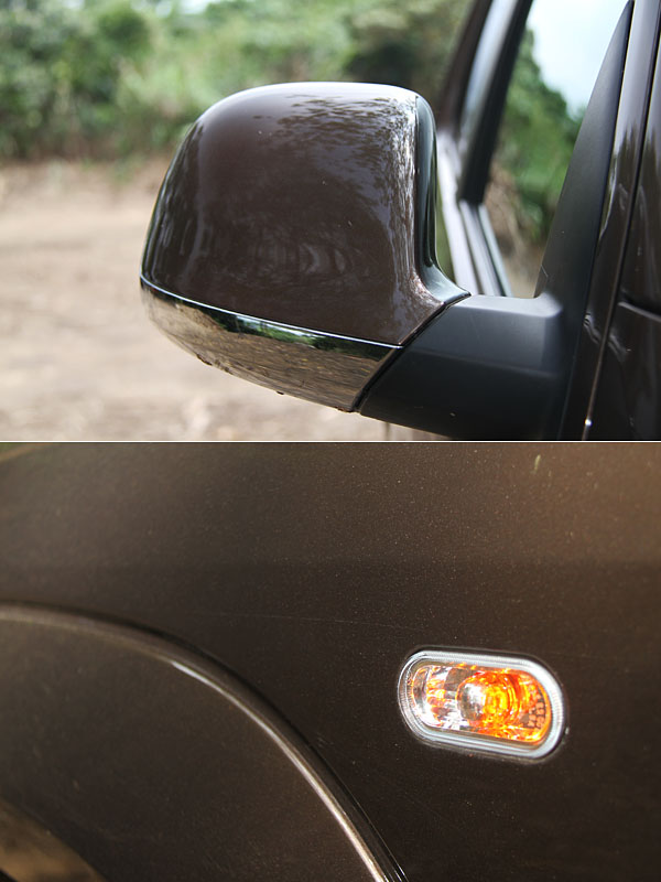 車外後視鏡下方具備金屬護蓋,車側前葉子板上也具備方向指示燈設計。