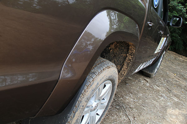 經過連日陣雨,路面其實是濕滑的,也讓原廠規格、安裝高速胎的Amarok添增越野難度。