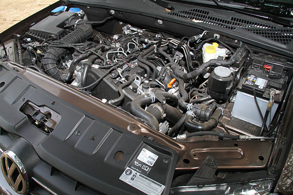 Amarok搭載著2.0升雙渦輪增壓TDI柴油引擎,以一小一大的渦輪系統,藉由巧妙的設計,近似於TSI雙增壓的邏輯,時而並列、時而串連的方式增壓輸出;使得此具引擎具備有163ps最大馬力與40.8kgm峰值扭力。