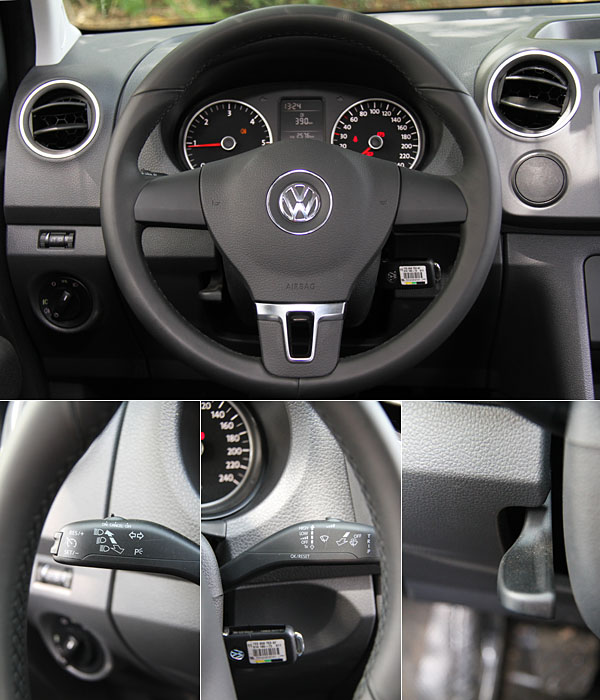 簡單的方向盤設計,沒有整合控制功能於其上,並採取手動調整機制。