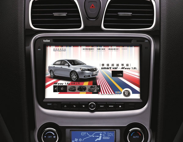 平板電腦搭配無線上網瀏覽已經成為國人日常生活的重心之一,體認消費者需求,tobe 裕隆酷比汽車於 M’way 1.8L率先導入 Wi-Fi聯網式智慧影音系統,大型觸控螢幕提供影音視聽、娛樂外,以 Android 平台開發的Wi-Fi聯網系統,消費者可運用預載的瀏覽器搜尋資料,更可透過預載 Android APP 程式了解即時路況、天氣以及社群網站等生活資訊,M’way 1.8L 不僅滿足您的移動需求,您所需要的全球資訊,也可在“移動生活”中即時掌握。