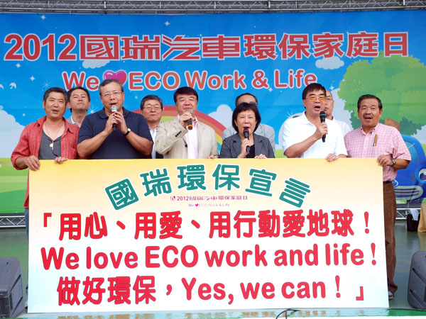 國瑞汽車星野總經理,於開場致詞中表示,由於今年為『Toyota綠能車元年』,國瑞汽車也要以具體的行動展現對環保的關心及努力,並且今後也將導入更多的環保綠能車,以期對地球環境有所幫助。他並引領在場所有人進行『環保宣言』,數千人共同大聲喊出宣誓口號:「用心、用愛、用行動愛地球,We love Eco work & life! 作好環保,Yes, we can!」;聲勢浩大,充分展示國瑞汽車重視環保的決心。在當天的活動也鼓勵員工攜帶環保餐具及購物袋,所以整天活動下來所製造的垃圾量相當少,且垃圾分類活動非常徹底,展現優質企業員工的素養。另外還設計「環保小點子」、「親子環保DIY」以及「環保擂台」等活動,以推廣環保意識與常識,並可落實於日常生活當中。現場也發起發票募集活動,員工的愛心發票都將捐給「台灣環境資訊協會」,以期能對環境保護盡一分心力。