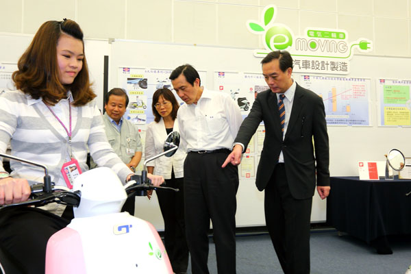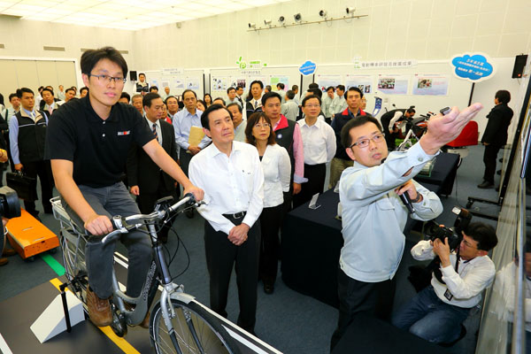 中華汽車精湛研發自行車動力套件 總統觀賞體驗成果。