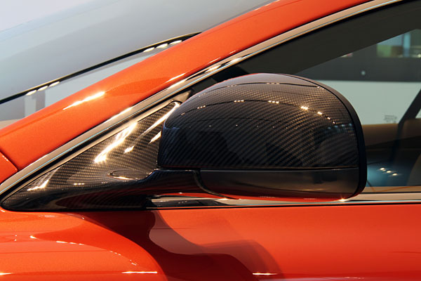 與一般DBS車型不同的是,除了下方支架外,連後視鏡外殼也運用了碳纖維材質。