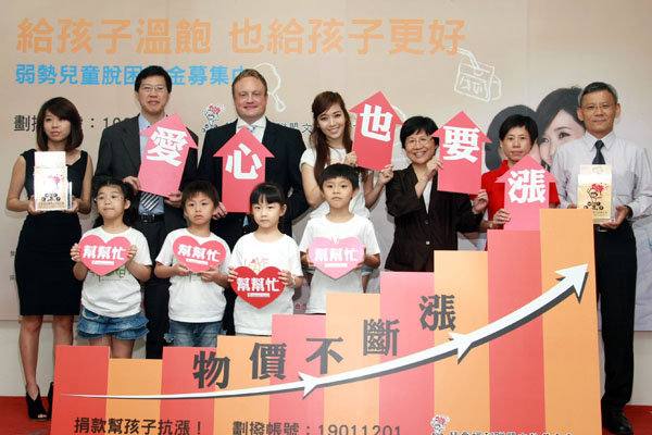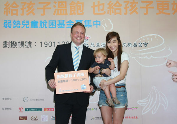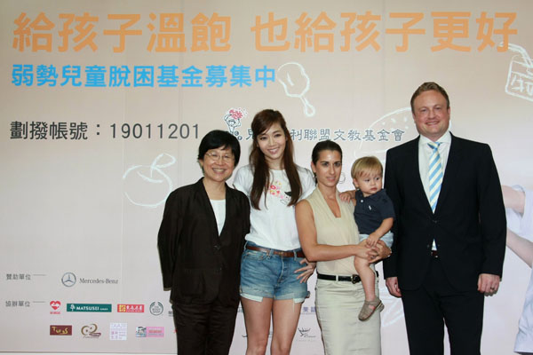 灣賓士財務長艾思文(Michael Eisenmann)(右一)偕同家人出席記者會,共同響應兒福聯盟『給孩子溫飽 也給孩子更好』勸募計畫。