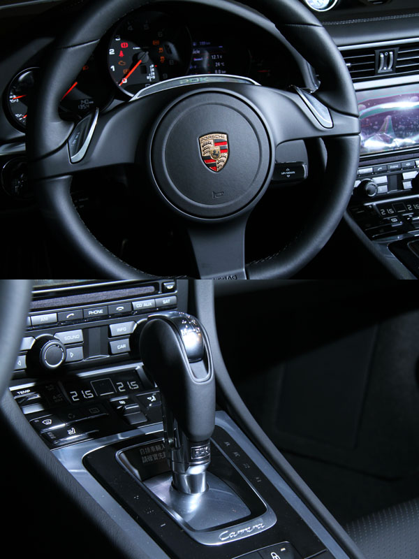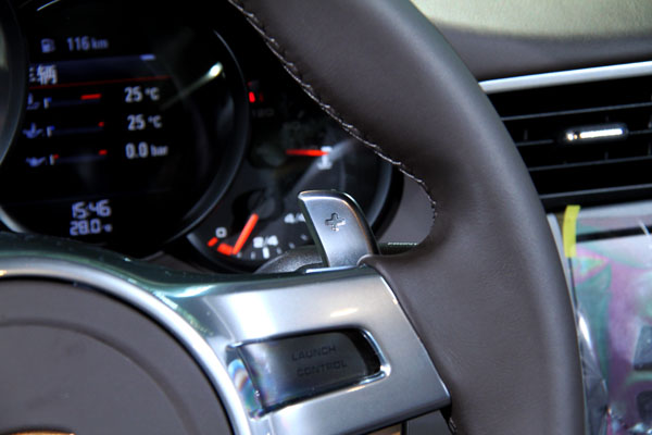 展示的911 Carrera S Cabriolet選配了Sport Design樣式方向盤,因此換檔機構與標準方向盤有所不同。