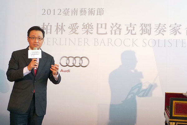 為了擴大響應2012臺南藝術節活動,台灣奧迪汽車再度於臺南府城打造年度古典樂盛事,獨家贊助「柏林愛樂巴洛克獨奏家合奏團-向巴哈致敬音樂會(Berliner Barock Solisten – A Tribute to J. S. Bach)」,將於六月八日假臺南市立臺南文化中心演藝廳隆重登場。對此,台灣奧迪汽車邱山祥總裁表示:「臺南府城是個充滿文化氣息的美麗城市,因此繼三月份熱情贊助「IL DIVO 美聲男伶」億載金城星光演唱會之後,我們十分榮幸能夠再度共襄盛舉參與2012臺南藝術節活動,屆時「柏林愛樂巴洛克獨奏家合奏團」將為南台灣廣大樂迷們帶來世界級的高水準演出,期盼大家都能細細品味、盡情感受其精湛無比的古典樂演奏魅力!」Audi汽車身為國內豪華房車領導品牌,對於推廣與贊助國內藝文活動一向是不遺餘力,未來台灣奧迪汽車除了將持續以實際行動關注國內的藝文發展並贊助相關展演活動之外,更希望帶給廣大樂迷們最精彩絕倫的音樂盛宴,充分展現出Audi汽車深耕台灣頂級豪華房車市場的努力與用心!