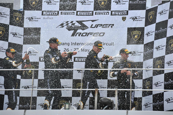 Lamborghini-寶鉑Super Trofeo首場亞洲挑戰賽冠軍於賽後歡慶的盛況。