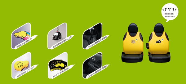 註3:五件組個性商品包含:2個專屬椅套、1只鑰匙圈、1組NISSAN New March kuso貼紙、1顆抱枕、1張止滑墊。