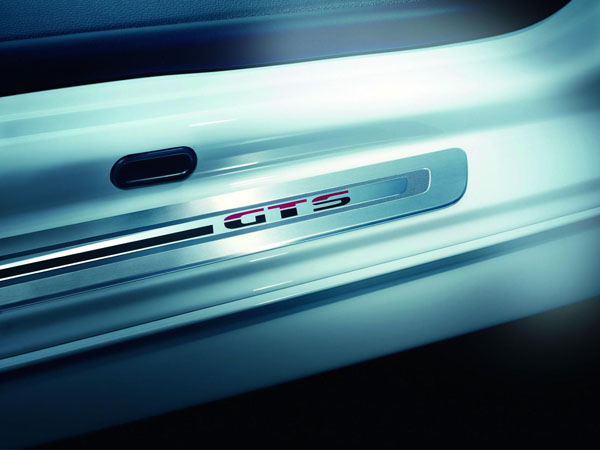 新一代的Scirocco GTS,將擁有1970-80年代的賽車直條式彩繪,自車頭貫穿至車尾,並且換上了專屬的空力套件,包括前後保桿、側裙與加大面積的尾翼都與一般Scirocco有所不同,而兩側後飾鏡外蓋與煞車卡鉗都換上了火熱地紅色塗裝,搭配上18吋鋁圈,動感倍增,同時在兩側葉子鈑嵌有〝GTS〞專屬銘牌以示身分。
