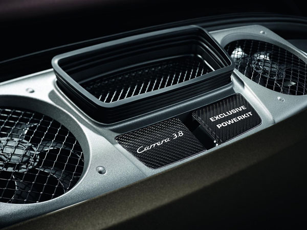 保時捷還提供了空氣動力學調整的外部元件,提供定制了各種擴展水平。基本組成部分,是前裙板延伸低,並具有強大的進氣口,從運動的設計包。該軟件包還包括一個傳說中的“ducktail”的形式固定式尾翼。頂端的升級是額外的固定尾翼,後擾流板和一個特殊的額外的進氣口的前擾流唇的空氣動力組件杯。其他新保時捷911卡雷拉的獨家產品,包括有色側和後窗的隱私玻璃和與車身顏色的各個組件的外觀包裝。內,保時捷還提供了許多,如室內裝飾的裝飾範圍從拉絲鋁碳包升級。