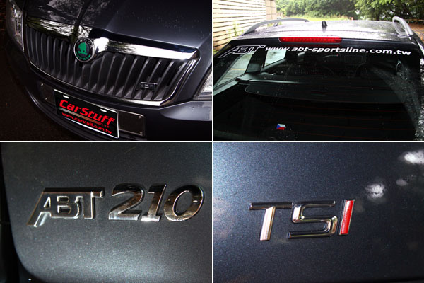 水箱罩上的ABT廠徽、車尾的210字樣〈馬力表示〉等,與利奔汽車自行加上的車貼,乃為此次試駕主角ABT Octavia Combi 1.8TSI外觀的辨識特徵。