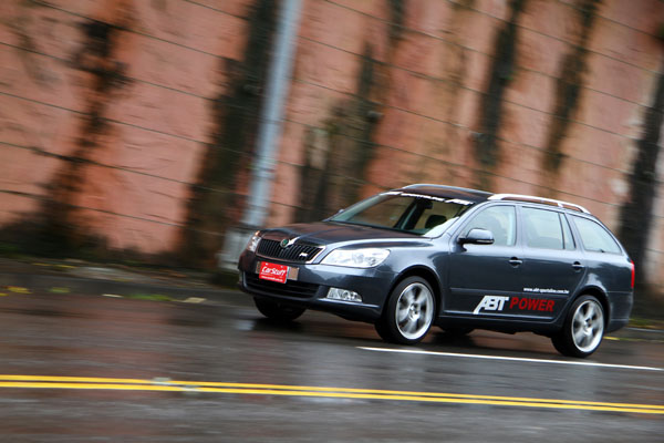 坐進車室內,除了腳踏組與腳踏墊之外,ABT Octavia Combi 1.8TSI與一般車型完全相同,若不低頭一瞧那昂貴的腳下精品,實難發現差異所在。發動引擎出發,都會中游移的ABT Octavia Combi 1.8TSI,低轉速的動力輸出溫馴,與原廠車型差異感受不大,待至郊區行駛後,轉速拉高後方才感受此改裝晶片的威力。的確,比照由ABT所提供的馬力與扭力輸出曲線,原廠車型動力輸出為160hp/4500-6200rpm最大馬力與25.5kgm/1500-4500rpm峰值扭力,而改裝ABT晶片後最大馬力可提升至210hp/6100rpm,峰值扭力輸出為31.6kgm/2600-4000rpm。很明顯的整個動力輸出峰直往後延伸,實際駕馭感受中,約莫超過250rpm之後推進力道提升,但非暴力的突然湧現,而是保持線性輸出的往上攀升,且在較原廠升級兩尺碼的18吋大腳承受下,輸出力道依舊可忠實的傳遞至地面,打滑情事降至最低;除了加速力道的明顯強化外,高速的延展性也更形優異,讓此1.8升的渦輪引擎展現出猶如3.0升自然進氣汽油引擎般的渾厚感,值得一提的是,縱使全力衝刺,煞車系統不顯疲軟,依舊可從容對應,也難怪ABT並未推出升級的煞車套件,原廠配置已顯足夠。