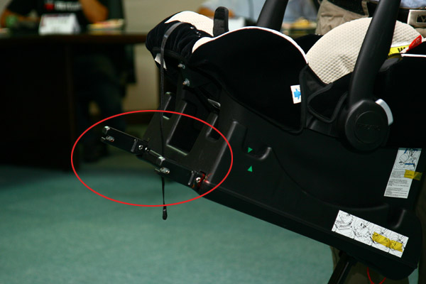 ↑ 紅圈標示的凸出鎖扣即為ARTC新增測試的ISO-FIX兒童安全座椅固定裝置。