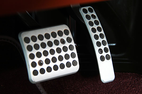 透過材質的拼接呈現覆層次的門檻設計;而手煞車拉桿也一如往常的設計於駕駛左側。