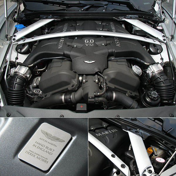 由英國知名引擎達人Cosworth所調校出的6.0升V12自然進氣汽油引擎,5935c.c.的排氣量中,具備有497ps/6500rpm最大馬力與570Nm/5750rpm峰值扭力,可讓Virage於4.6秒內完成0-100km/h加速過程,極速可達295km/h。