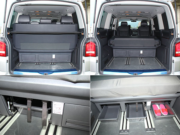 車價為新台幣292.8萬的Multivan 2.0TSI 4Motion,也不負其商旅車款霸主的身分,除了車上有著Alcantara類麂皮材質鋪陳的座椅外,舉凡是 RCD 310 CD+MP3音響系統搭配8支揚聲器、全自動電子三區獨立式恆溫空調系統、招牌的多功能折疊式行動辦公桌、三排座椅以下皆備的儲物格、多功能調整的二三排座椅、ABS/EDL/EBD/ASR/MSR/ESP等齊全的主動安全系統與六具防護氣囊等,以相當齊全的規格配備,來提升駕乘客的乘坐舒適度與安全性;別忘了還有T5車系自豪的車身剛性與韌度十足的底盤反應,更是Multivan 2.0TSI 4Motion車型中,最為基礎的硬底子條件。