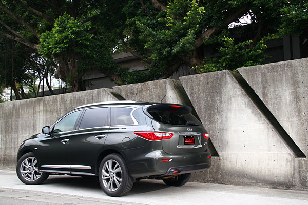 置於底盤的調校表現,那懸吊的作動調性,也是一派的Infiniti,如果你有駕馭過Infiniti品牌車款的經驗,那你一定對於JX不感到陌生。而在JX身上,考量定位,舒適成分更多了些,Q度的感受放大,硬調的衝擊少了許多,縱使試駕車型搭載了20吋的大圈,面對台北市的多變路況,依舊沒有讓人印象深刻的不適,較兄弟車款如EX或FX來得平易近人許多,且不分第一排或第三排空間,都可以感受到JX於下盤設定的友善程度。