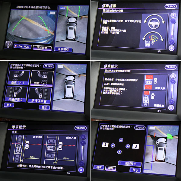 JX所搭載的MOD動態物體偵測,會以俯視角度顯示車輛四周的移動物體,對於JX此龐大身型的車款而言,的確是消弭視覺死角的極佳輔助方式,且如果當排檔位置在R或D檔時,系統還會自動提醒駕駛移動物體的狀態。此外,日前曾於三義廠區內所體驗的停車導引輔助,雖然導引指示的功能清楚,且指引的停車動作往往可順利完成,但在一般道路上使用,除了過於耗費時間容易造成後方車輛的不便外,過多變因的停車位置,也讓此系統不過於實用;除非視車流較少的賣場停車場或路幅較寬的道路,不然以較擁擠的都會市區道路而言,此停車輔助系統還真只能作為「輔助」,來觀看週邊環境狀況為主。
