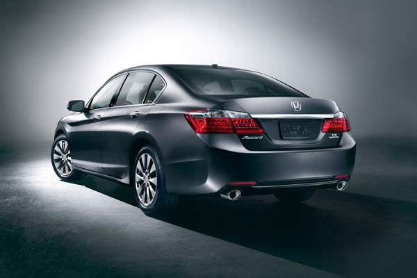 2013年式Accord的外觀充滿表現力、精緻、與高級感;從車頭開始,厚實的全新水箱護罩、與引擎蓋上的兩道摺線設計,均顯露Accord的力量與動感;而車身側面部份,一道有力的線條,從前輪拱劃過車門門把向車尾延伸,更傳達Accord的動感格調,而車門門檻位置深遂的凹凸摺線,亦突顯Accord的存在感。車尾部份,由C柱向下、向中線延伸到行李廂蓋呈現倒梯形的斜面設計,更使Accord的車尾同樣具強烈動感。