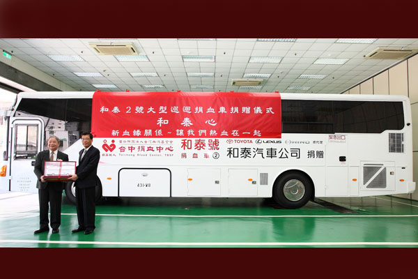 此外,早在民國66年和泰汽車即已捐贈全台灣第一台大型巡迴式捐血車「仁義號」給台北捐血中心,堪稱當時儀器及設備最為完善先進之捐血車。繼去年和泰汽車捐贈「和泰號」捐血車給台南捐血中心,今年再捐贈一台價值6百萬元之「和泰號」大型巡迴捐血車給台中捐血中心,希望能提升更多社會民眾的捐血意願與熱忱。