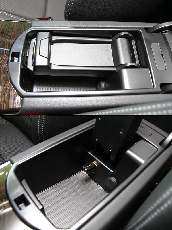 中央扶手方為Aux-in外接音源裝置與USB音源插槽處。