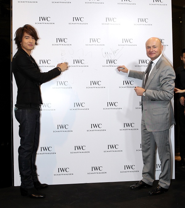 IWC 萬國錶 全球行政總裁Mr. Georges Kern與品牌嘉賓言承旭共同於IWC萬國錶品牌牆面上親筆簽名留念