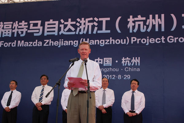 Ford汽車全球總裁暨執行長Alan Mulally日前至中國杭州參加全新組裝廠破土儀式,並表示於2015年增加50%年銷量至800萬輛。