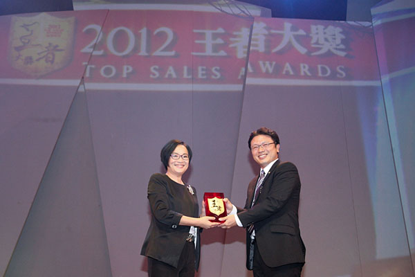 福特汽車經銷商福彰汽車新車銷售部經理王堅志(右)勇奪商業週刊王者大獎汽車類金獎(圖片提供:商業週刊王者大獎活動小組)。