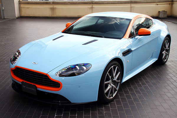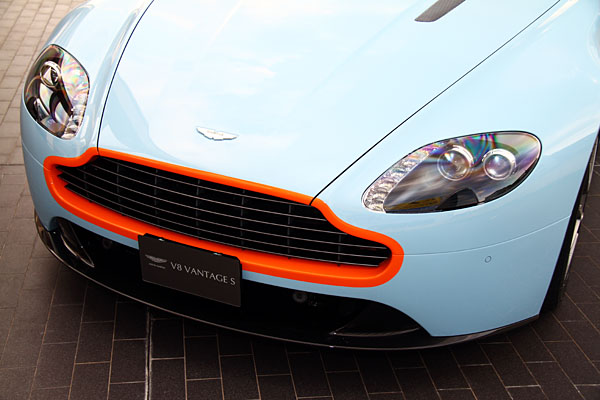這輛Aston Martin原廠命名為Gulf Livery的賽車塗色,主要以Gulf Blue淺藍為主要車色,對比亮橘色則環繞於經典造型水箱護罩周圍、與自A柱延展而上的車頂線條,搭配精心選配的碳纖維輕量化賽車桶型座椅與碳纖維車側散熱格柵等性能象徵,不但使得駕馭這輛V8 Vantage S擁有十足的賽車駕馭感受,在道路上寫意奔馳更絕對是眾人矚目的時尚焦點。
