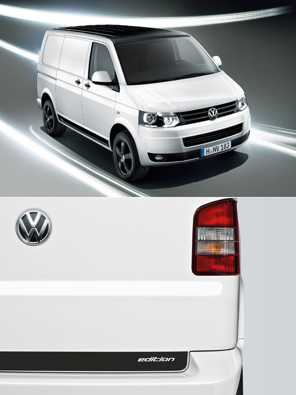 T5車系方面則主打Transporter Edition,除了經典、簡樸的白色車身烤漆外,反差的黑色設計元素則呈現在車頂、17吋鋁圈(可選配18吋)、與車身的車貼上。Transporter Edition的特別配備還有H7頭燈、霧燈、頭燈還具備轉向功能,內裝則具備特別的座椅設計,方向盤也採皮革包覆。這款獨具動感的Transporter可搭載各式汽柴油動力,從輸出102hp的TDI柴油引擎,到出力最大的204hp 2.0 TSI汽油動力等。