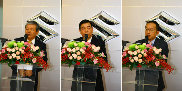 Suzuki Taiwan宮崎準一董事長,與新北都鈴木汽車黃朝池董事長、及傅義福總經理(左至右),均親臨參與聯合開幕儀式。
