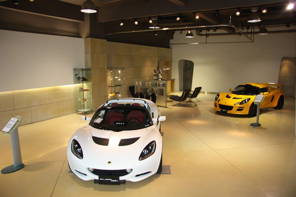 Lotus台北市展示間以白色為主基調,同時陳設與裝潢也以極簡風格做為主軸,來襯托出Lotus強調「純粹 ‧ 熱情」的真性情,並在寬敞的空間裡盡興欣賞Lotus品味獨具且身型性感的外觀線條。而Lotus現階段所有引進的車款,目前皆以「樂無止盡的操控樂趣」為主要訴求,並強調「躍動 ‧ 魅力 ‧ 操之在我」的品牌魅力,藉由輕量化達成極優異的馬力重量比,創造出媲美千萬超跑的性能魅力,進而成為有史以來最具親和力的超級跑車,並在公路與山道上向Ferrari看齊。