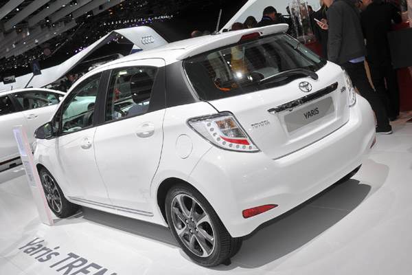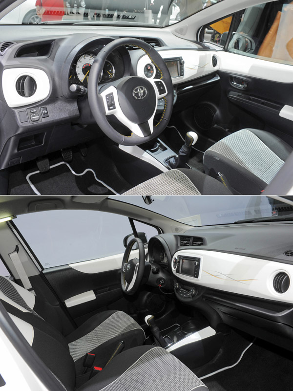 內裝部份,中控台幾何的變化在儀表板採用軟質素材,車門內側面板上半部則以白色為搭配,而縮短的排檔桿長度則增進人體工學,白色排檔頭面板更與車內色彩搭配相呼應;另外在方向盤、排檔頭、與手煞車拉柄等部份內裝,則使用赭色縫線裝飾,中控台上層面板也採用全新的珍珠白烤漆。與外觀相同地,Yaris Trend獨有的個性在內裝也以黑白對比做為其特色。
