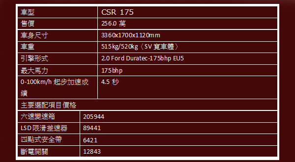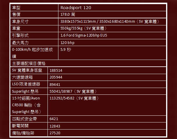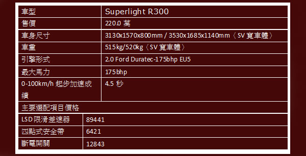 以下為Caterham初期引進車種建議售價與基本規格: