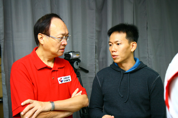 學員進行操作、楊會長出狀況題,陳乃嘉則負責監督學員的動作,並提供建議。