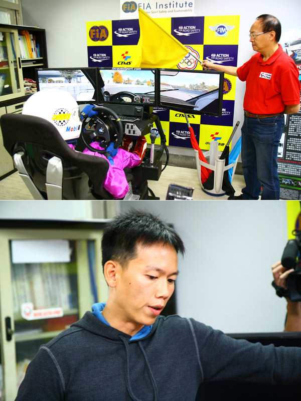 本次賽車模擬教室也請到台灣唯一獲得FIA認證的A級賽車手─陳乃嘉擔任種子教練;左為中華賽車會楊光榮會長。