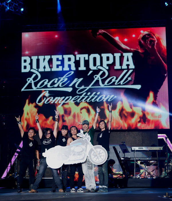 10/5(五)、6(六)兩天晚上分別有MTV愛瞎佛演唱會與哈雷狂熱搖滾演唱會,現場請到多位知名歌手、團體輪番上陣,如︰柯有倫、A-Lin、彭佳慧、黃品源等等,更請到20多位名模穿著2012最新秋季與110週年紀念款T-shirt、外套、皮衣、皮褲、項鍊、側包等精彩走秀。同時也頒出全台Power搖滾樂團大賽前三名獎項,第一名可贏得市價56.9萬之883L一台。Bikertopia Taiwan Rally七天六夜活動,最後在10/6(六)晚間施放絢麗煙火,在彭佳慧與黃品源動人歌聲之後,並請到趙傳為壓軸嘉賓,親自騎著哈雷2013年最新車款上台、演場經典騎士歌曲,現場情緒沸騰達到最高潮。