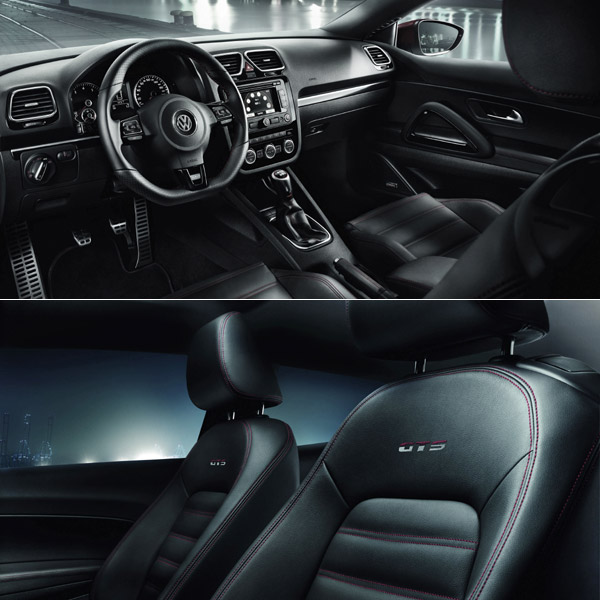 Scirocco GTS內裝以座椅上的GTS字樣為亮點,另外特殊的排檔頭、紅色縫線裝飾的方向盤等也都是標配。