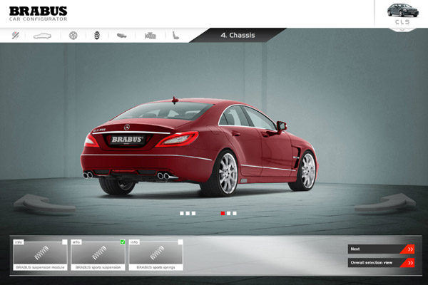 使用者能藉由選擇Brabus的空力套件與輪圈組,打造個人化的車輛外觀,並按照操作步驟、給予車輛各別的註釋選項。此外,Brabus引擎改裝、與Brabus皮革內裝的變化,也都能各別進行選擇。