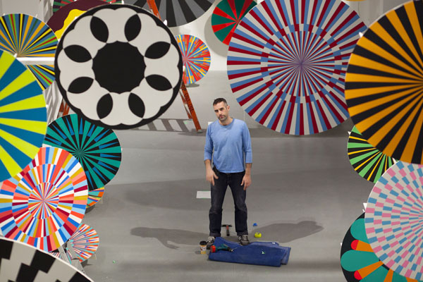 藝術家Jim Drain 於The AvantGarde Diaries L.A中與其創作「風車」 Pinwheels。