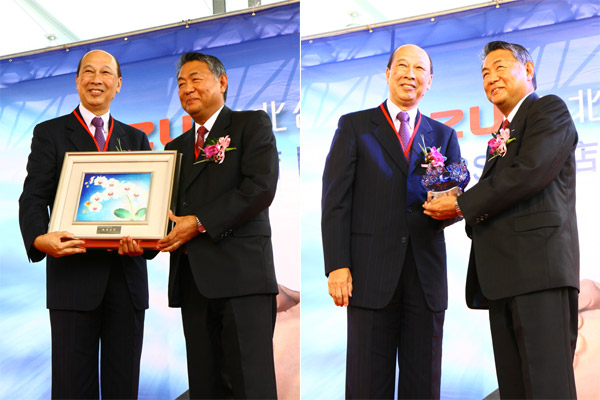 大昌行集團主席許應斌先生(左)、與日本Isuzu月岡副社長相互交換象徵合作關係的禮品。